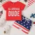 The 4th of July is a special occasion, and your toddler deserves to look their best. This outfit is designed to combine style and comfort, making it ideal for summer celebrations. The short sleeve T-shirt features a fun letter print, while the knot front shorts add a trendy touch. Together, they create a charming and festive look for your little boy.